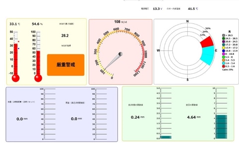 この気象観測システムは、データロガーを中核として、気温・湿度・日射量・風速・風向・降雨といった環境要素をリアルタイムで計測する。取得データは、Wi-FiまたはLTE通信を介して送信され、教育機関や管理者はWebブラウザーからリアルタイムで確認が可能だ。