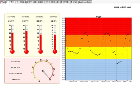 同システムは、安全対策として気象データや暑さ指数(WBGT)を日常的に可視化することで、生徒や教職員の環境意識および熱中症リスクへの理解を高めることを目的としている。さらに、学校内環境のデータ化のほか、暑さ指数(WBGT)をリアルタイムで算出し、客観的な安全判断を支援する。