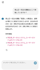 AIチャットボットには、学内規程や学生便覧など、大学独自の資料を登録できる。登録した資料はAIが分類し、学生・教員・職員など利用者に合わせて回答を提示。同じ質問でも、学生向けと教職員ごとに最適な情報を示せる仕組みとなっている。
