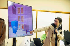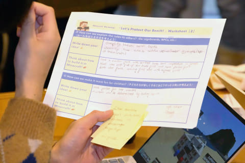 当日は、逗子キャンパスと逗子海岸を舞台に、日本をはじめ、欧米、アジアなど多様な国・地域から集まった学生たち約40名が大学の垣根を越えて協働チームを編成して活動。逗子海岸でのビーチクリーン活動で得られた「自然物と人工物の区別の難しさ」の気付きを基に、マインクラフトを使って小学生向けのデジタル教材を共同制作した。