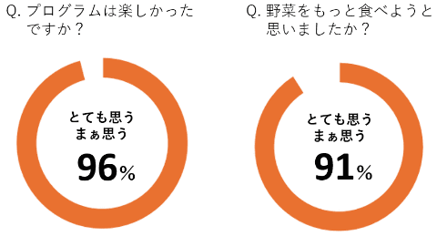 2024年度に参加した小学生からは、「クイズ形式で野菜の性質や野菜の大切さを知った」「苦手な青野菜(キャベツやピーマン)もひと口ずつご飯と一緒になら食べれるようになった」といった声が寄せられた。保護者からは、「野菜ジュースをきっかけに興味を持ち始めた」「野菜自体自分で作ってみたいと話している」という反応があったという。