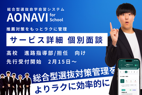 高校の総合型選抜対策を支援、2月15日から先着15校に「AONAVI for School」の個別説明会を実施