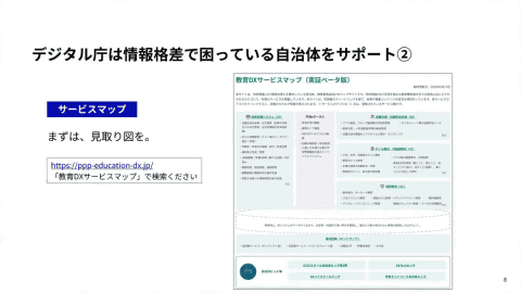 「サービスマップ」としては、これまでに何度か言及された「教育DXサービスマップ」がある。このマップは、教材や各種サービス、さらにはネットワークなどの製品やサービスについて、どのような選択肢があるのかを示す“見取り図”を提供するものだという。
