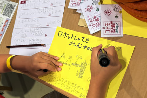 コドモ記者の活動は、見るだけでは終わらない。取材の後は、「babytoi Art Design Lab」のブースで、新聞制作に取り組む。文章を書いたり、絵を描いたり。発見したことを整理しながら、自分の言葉で表現していく。