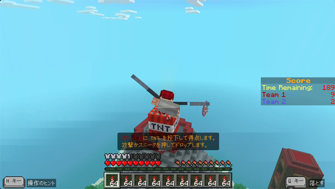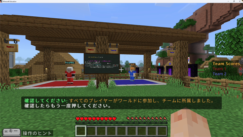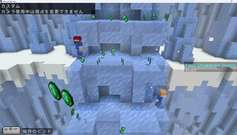 さらに勝敗が決しても、引き続き同じチーム編成のまま再試合を続けることも可能だ。メンバー構成を変えたい場合は、いったん終了して、ワールドの生成からやり直せばよい。各ミニゲームは、1回あたりだいたい数分で終了するので、時間管理がしやすい点もこのワールドの特徴だ。