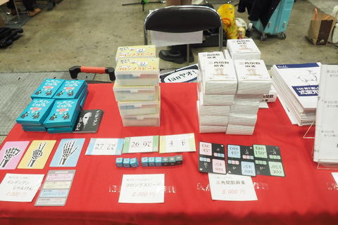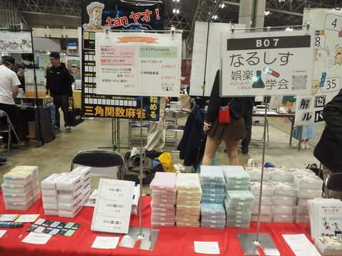 算数や数学をテーマにしたアナログゲームを制作している、なるしす娯楽学会のブースでは、三角関数と麻雀を組み合わせた「三角関数麻雀」や、じゃんけんとインディアンポーカーを組み合わせた「インディアンじゃんけん」など人気ゲームに加え、新作の算数ゲーム「ゼニガタ」が出展・販売されていた。