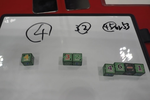 ゼロイチカードは表が「1」、裏が「0」になっており、2進法で0~15までの数を表現できる。こちらもルールはシンプルで、2進法という言葉自体は知らなくても、右から1の位、2の位、4の位、8の位ということを理解すれば、小学生でも問題なく遊べる。