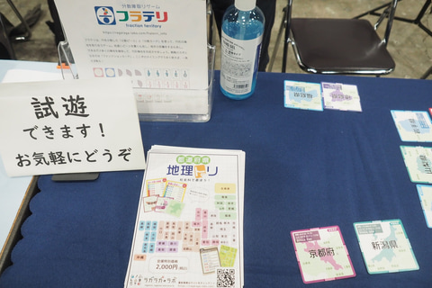 ラガラガ・ラボは、遊びながら学べるアナログゲームを多数制作しており、今回は新作として都道府県を学べる「地理トリ」を出展していた。