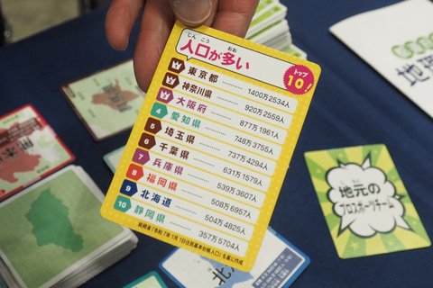 「地理トリ」は、複数のルールで遊べるアナログゲームで、基本となる「地理トリ・ランドリ合戦」では、一番早く都道府県カードを10枚集めるか、いずれかの地方のカードを全て集めたプレイヤーが勝利となる。場に出ている都道府県カードが手札のランキングカードに当てはまれば、そのカードを取ることができるので、遊びながら都道府県の特徴を覚えられる。