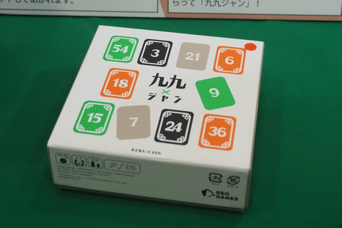 色セロファンを重ねるパズルゲーム「かさねイロ」などで知られるGEO GAMESのブースで紹介したいのが、遊びながら九九を学べる「九九ジャン」だ。