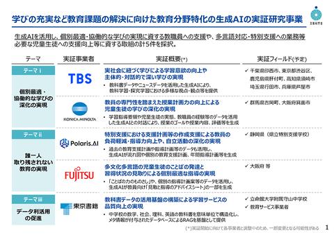 寺島: 今取り組んでいるのは、特別支援における個別指導計画のひな型作成や、探究学習や総合の時間などで、子供の問いに応じた教科書データやニュースデータを示しながら、多様な視点を提供できるAIなどです。
