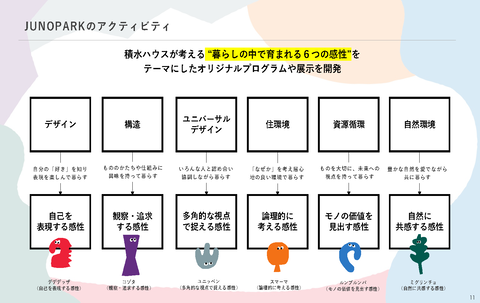 メインターゲットは小学校高学年で、積水ハウスが考える「暮らしの中で育まれる6つの感性」を豊かにするアクティビティや展示を楽しむことができる。そうした体験をきっかけに、子供たちが自分の「好き」や「大切」に気づき、自分らしい幸せを思い描きながら、人生を主体的につくっていくための感性を育んでいく場となることを目指している。