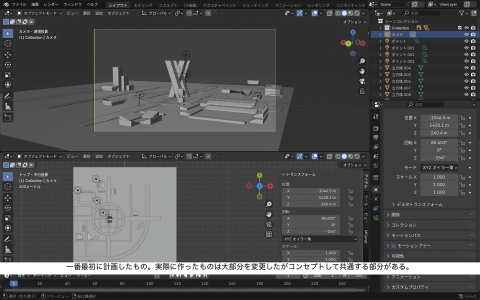 自分たちが思い描くまちを正確に表現するには全体像の把握が不可欠と考え、3Dモデリングソフト「 Blender 」にマインクラフトのデータを取り込むことで、描画距離の制限を超えてまち全体を俯瞰できるようにした。
