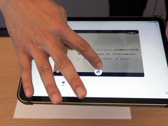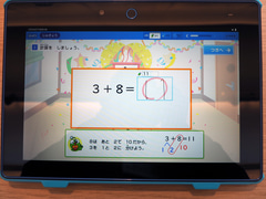 会場には、「進研ゼミ 小学講座」と「進研ゼミ 高校講座」を体験できるスペースも用意されていた。小学講座の専用タブレットも一新されており、実際に触ってみたが、画面の見やすさやペンの反応なども良好であった。小学講座の教材は、プレゼンテーションの通り、 ゲーミフィケーションが随所に取り入れられており、子供たちが積極的に取り組むことが期待できそう だ。