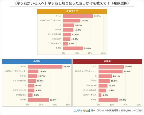 ニフティキッズ「ネッ友について」(2024年8月)を見ると、 大人とは異なる子供たちの実態 がよくわかる。