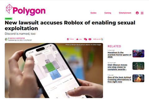 ロブロックス上では、児童に対する性的グルーミングの報告が急増している。