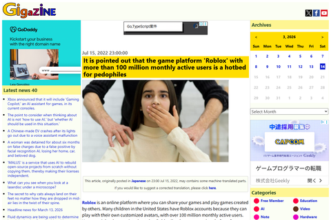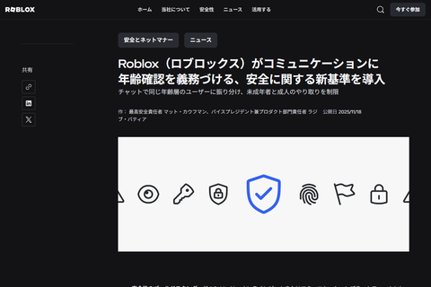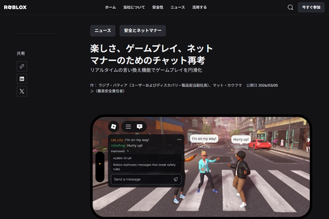 ゲーム版YouTube「Roblox(ロブロックス)」をご存じだろうか。ゲームを遊ぶだけでなく、作成・共有もできるオンラインプラットフォームだ。2025年時点で世界全体のユーザー数は1日平均1億4400万人で、 13歳以下が約40%を占めている という。日本でも小学生を中心にユーザーが急増しており、企業や自治体が交流の場や学びの場として活用する一方で、小学生などの低年齢の子供たちが被害に巻き込まれている。
