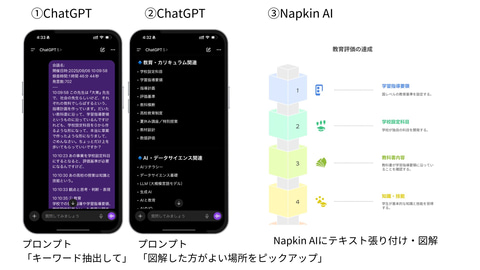 インタビューやヒアリング、グループディスカッションなどの内容を文字起こししておくことで、発言や意見を整理したり、議論の流れを構造的に可視化したりできます。たとえば、文字起こししたデータをChatGPTで要約・分類し、Napkin AIなどの生成AIツールで図解すれば、意見のつながりや議論の構造をわかりやすく視覚化できます(Napkin AIに関する記事は こちら )