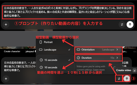 Step 2:作りたい動画の 「プロンプト(指示文)」を入力する