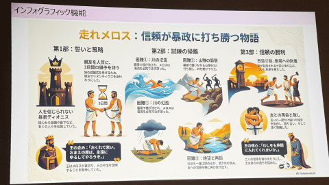 生成AIの活用については、教材研究やコンテンツ作成の場面で、文章から要約やマインドマップを作成したり、プロンプトだけで理科実験の動画や説明の映像を生成したりといった活用例が紹介された。最後に生田氏は、「タブレットは単なる道具ではなく、各教科で活用することで、子供たちが世界を見るための『眼鏡』になり得る」と述べた。 子供を真ん中に置いた教育と、それを支えるデジタル学習基盤の掛け合わせ こそが千葉県の教育DXの軸になると語った。