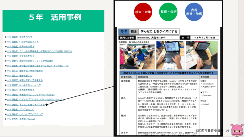 印西市では、ICT支援員は機器トラブル対応だけでなく、授業準備や教材作成、活用アイデアの提案にも関わってもらい、 授業で何を実現したいのかを教員と共に考えるパートナー と考えているのが特長だ。その実践の蓄積と共有を目的に、ICT支援員が「 印西市教職員専用サイト 」を作成し、ICTを生かした授業資料を学年ごとに公開。加えて、チャットでいつでも相談できる体制を整えた。