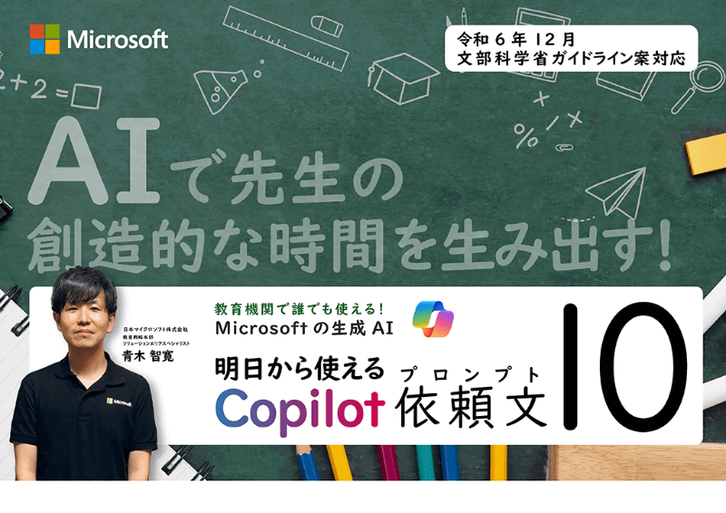 マイクロソフト、教育機関で誰でも使える『明日から使えるCopilot依頼文(プロンプト)10』を無料公開
